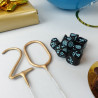 • 20 lat Pasji — Tło kostek jest lśniąco-czarne (zmieszane z brokatowym pyłem), a zdobienia są turkusowe - dokładnie tak, jak barwy naszego logo.