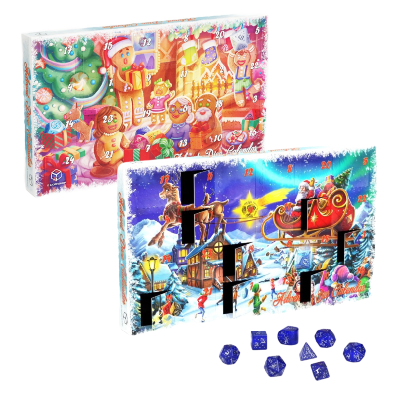 Tak jak w ubiegłym roku, każdy dzień grudnia wzbogacamy o nową niespodziankę, szczyptę zdumienia i łyk świątecznej atmosfery. Wewnątrz kalendarza odkryjesz skarbnicę ręcznie wybranych kostek, które dodadzą epickości Twoim przygodom i Twojej kolekcji kostek!