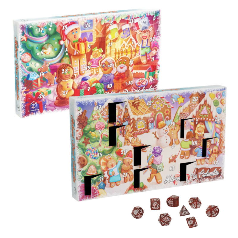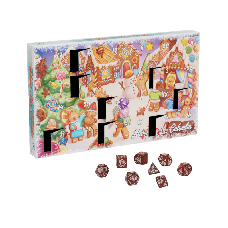Tak jak w ubiegłym roku, każdy dzień grudnia wzbogacamy o nową niespodziankę, szczyptę zdumienia i łyk świątecznej atmosfery. Wewnątrz kalendarza odkryjesz skarbnicę ręcznie wybranych kostek, które dodadzą epickości Twoim przygodom i Twojej kolekcji kostek!