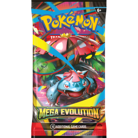 Pokémon TCG: Mega Evolution 01 - Booster to paczka 10 losowych kart do gry, zawiera też 1 kartę energii lub 1 kartę kodu Pokémon TCG Live.