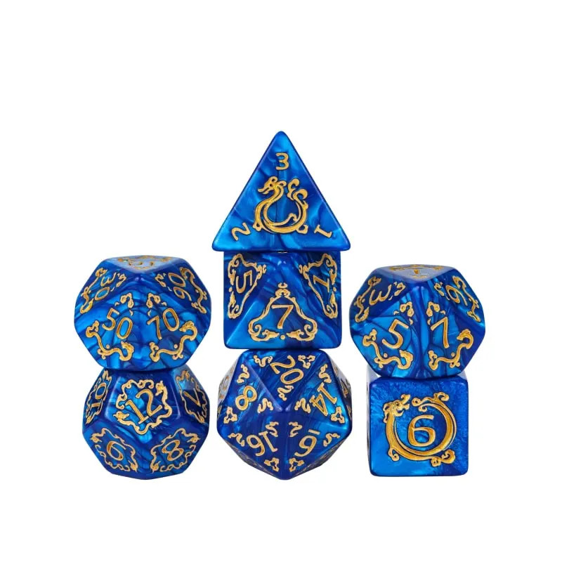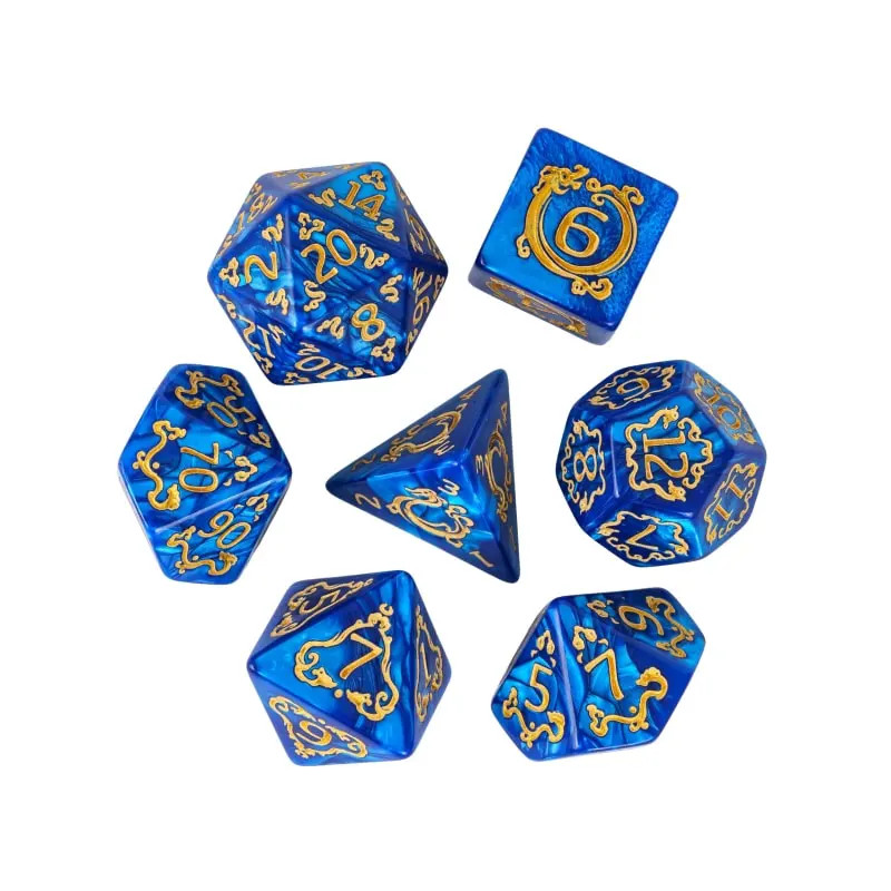 • Zestaw 7 kości wykonanych z akrylu. Idealnie nadają się do każdego systemu i dla każdego gracza.