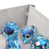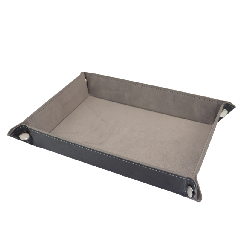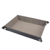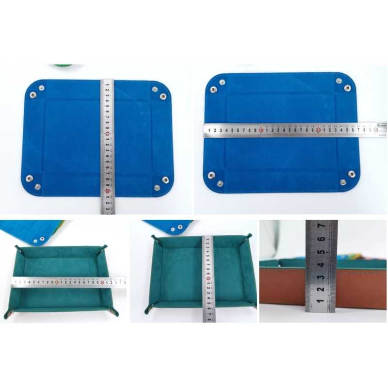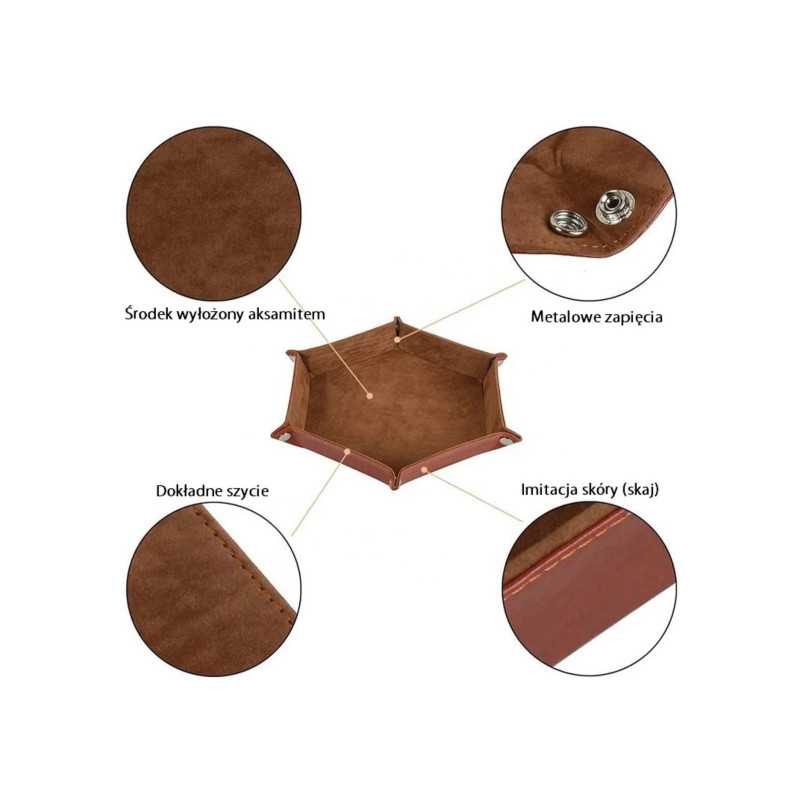 Dice tray wielkości 22x16 cm wykonany ze skóry i aksamitu. Doskonały wybór aby utrzymać kostki w jednym miejscu i wygłuszyć dźwięk ich toczenia się.