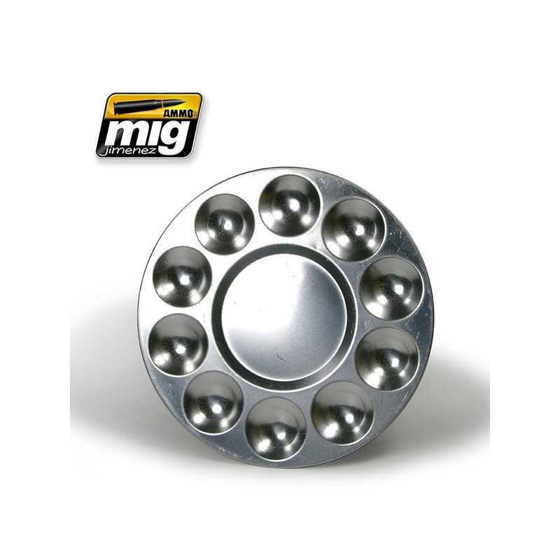 Ammo: Aluminium Pallet (10 Wells) to aluminiowa paleta z 10 wgłębieniami. Jest odporna na wszystkie rodzaje farb i chemikaliów, takimi jak farby akrylowe lub emaliowe, dzięki czemu jest to podstawowe narzędzie idealne na stół warsztatowy każdego modelarza.