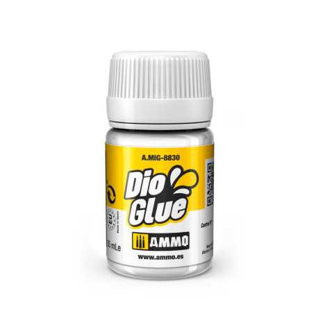 Ammo: Dio Glue to klej o dużej mocy i wytrzymałości, stworzony specjalnie do mocowania elementów roślinności, mchów, sztucznych traw, liści. Ammo: Dio Glue można precyzyjnie nakładać pędzelkiem, rozcieńczać, czyścić wodą. Wysycha do całkowitej przezroczystości w ciągu 24 godzin.