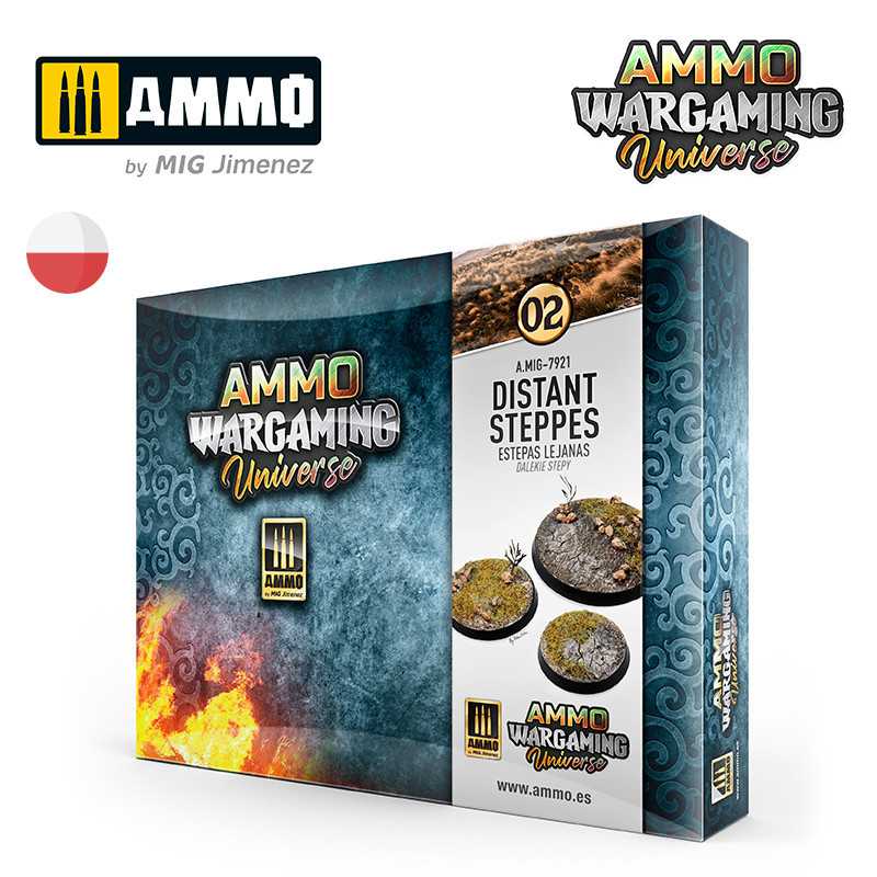 Ammo: Wargaming Universe 02 - Distant Steppes - Dalekie stepy to zestaw produktów, które pozwolą każdemu modelarzowi na stworzenie własnych realistycznych i naturalnych terenów. Produkt zawiera również przejrzystą instrukcję krok po kroku w języku polskim, angielskim i hiszpańskim.