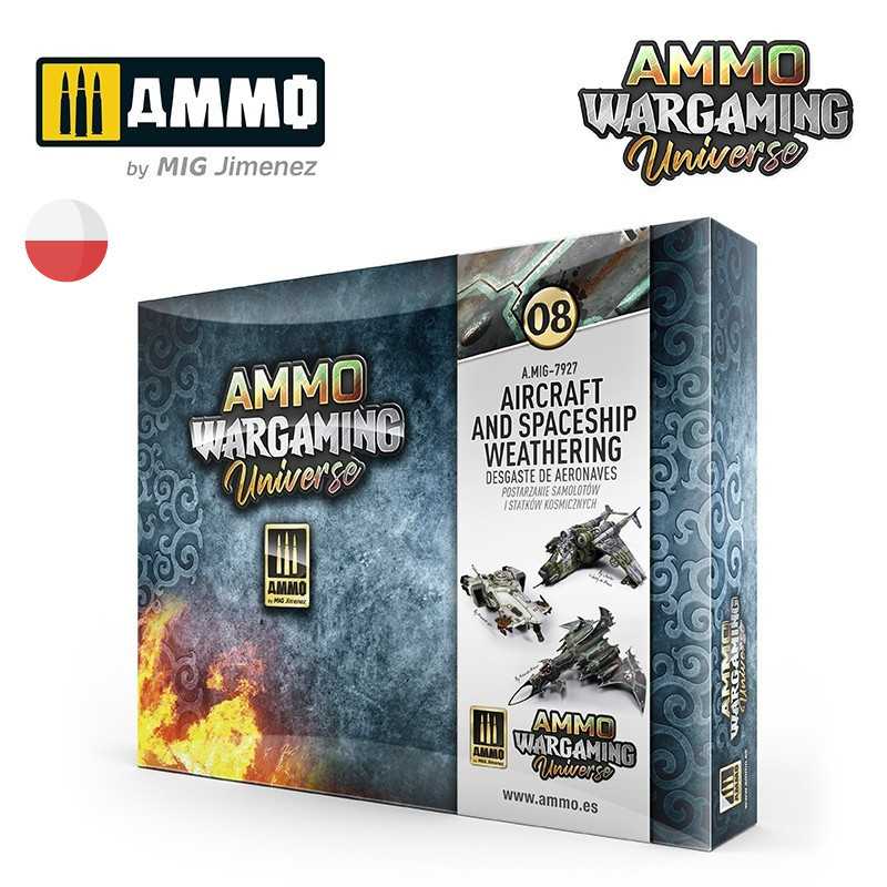 Ammo: Wargaming Universe 08 - Aircraft and Spaceship Weathering - Postarzanie samolotów i statków kosmicznych to zestaw produktów, które pozwolą każdemu modelarzowi na stworzenie realistycznych efektów. Produkt zawiera również przejrzystą instrukcję krok po kroku w języku polskim, angielskim i hiszpańskim.