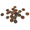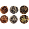 Te cynkowe monety pokryte zostały grubą warstwą odpowiednio niklu (srebrne), mosiądzu (złote) i miedzi (miedziaki). Powłoki są oksydowane, dzięki czemu wyglądają jakby używane były przez lata.