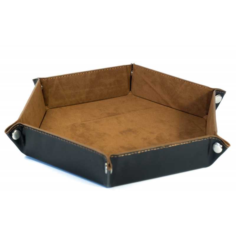 • Dice tray 23 cm wykonany ze skóry i aksamitu. Doskonały wybór aby utrzymać kostki w jednym miejscu i wygłuszyć dźwięk ich toczenia się. Dice tray jest wykonany ze skóry, a w środku wyłożony aksamitem. W narożnikach znajdują się wytrzymałe, metalowe napy dzięki którym możemy płaską matę zmienić w miseczkę do rzucania kośćmi. Materiał: Skaj