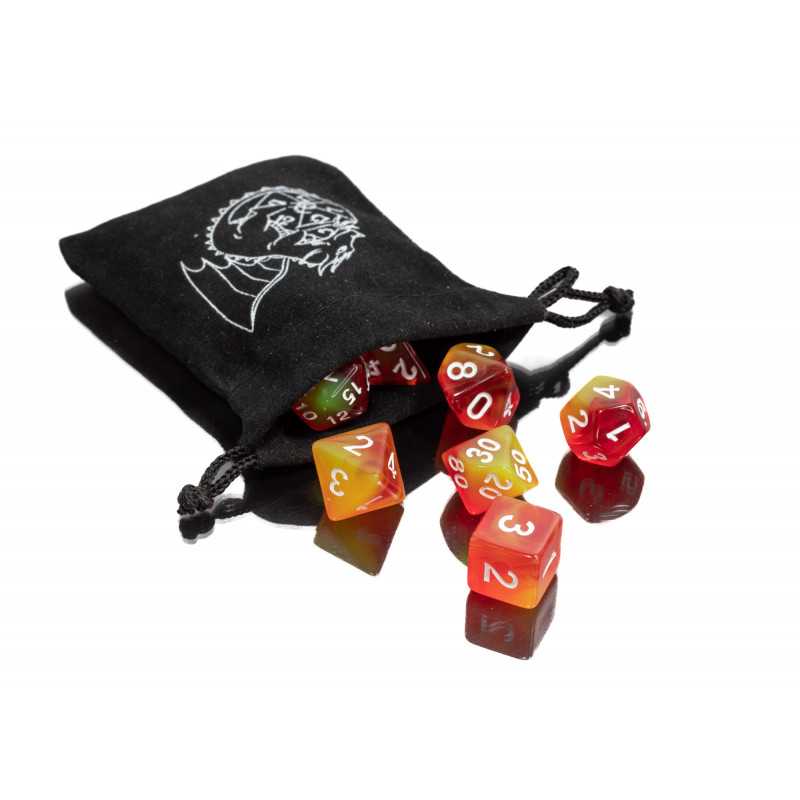 Wybierz komplet kości z tacką do rzucania, aksamitnym woreczkiem pod kolor, monetami, albo zmywalną matą. Obdaruj kogoś zestawem nietypowych kostek, które świecą w ciemności lub całym niezbędnikiem gadżetów RPG – w sam raz dla początkującego i zaawansowanego gracza!