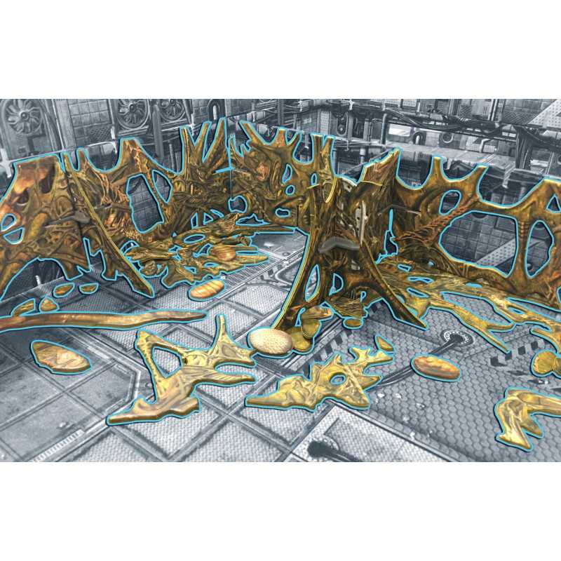 BattleSystems: Alien Infestation zawiera wszystko, czego potrzebujesz, aby zaatakować swój stół do gier sci-fi biomasą obcych. Zawiera wystarczającą ilość makabrycznych plam na ścianach i chorej tkanki obcych, aby pokryć jedną trzecią standardowego obszaru gry 2 x 2 (600 mm x 600 mm).