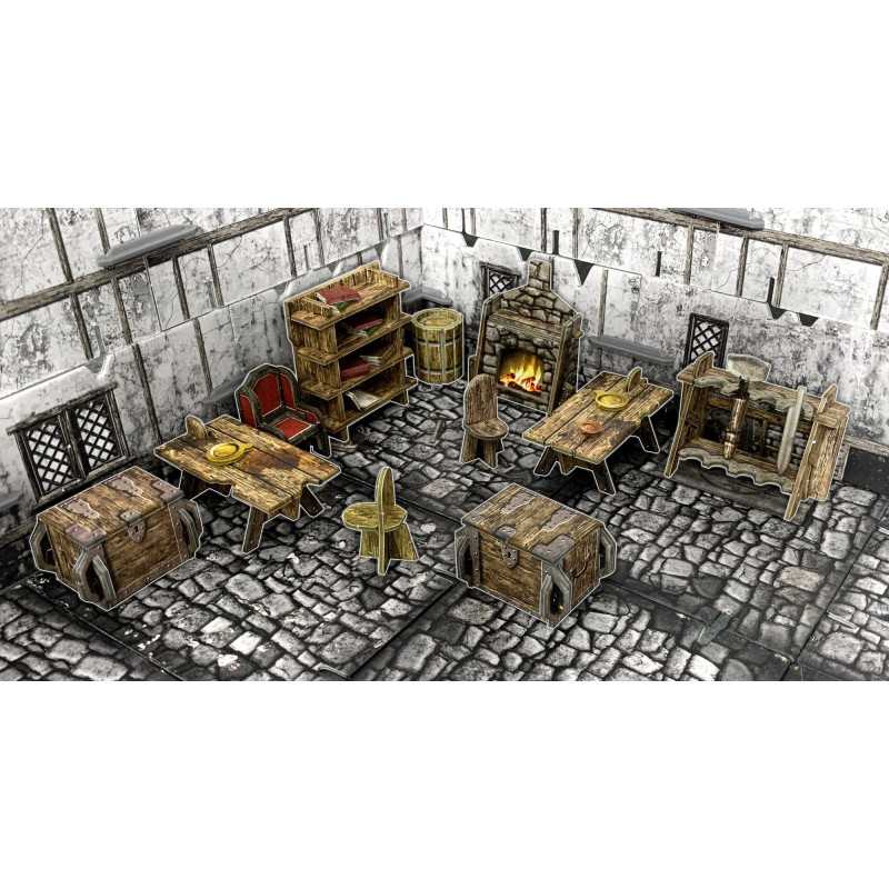 BattleSystems: Fantasy Village Furniture zestaw sprawi, że Twoja plansza będzie pełna mebli i rozproszonego terenu. Elementy te pasują równie dobrze do wioski, zamku lub lochu, a twoje figurki będą miały wszystko, czego potrzebują, aby zrelaksować się w lokalnej tawernie lub łupić, gdy wejdą do twierdzy wroga. Elementy są kompatybilne z resztą serii Battle Systems Fantasy.