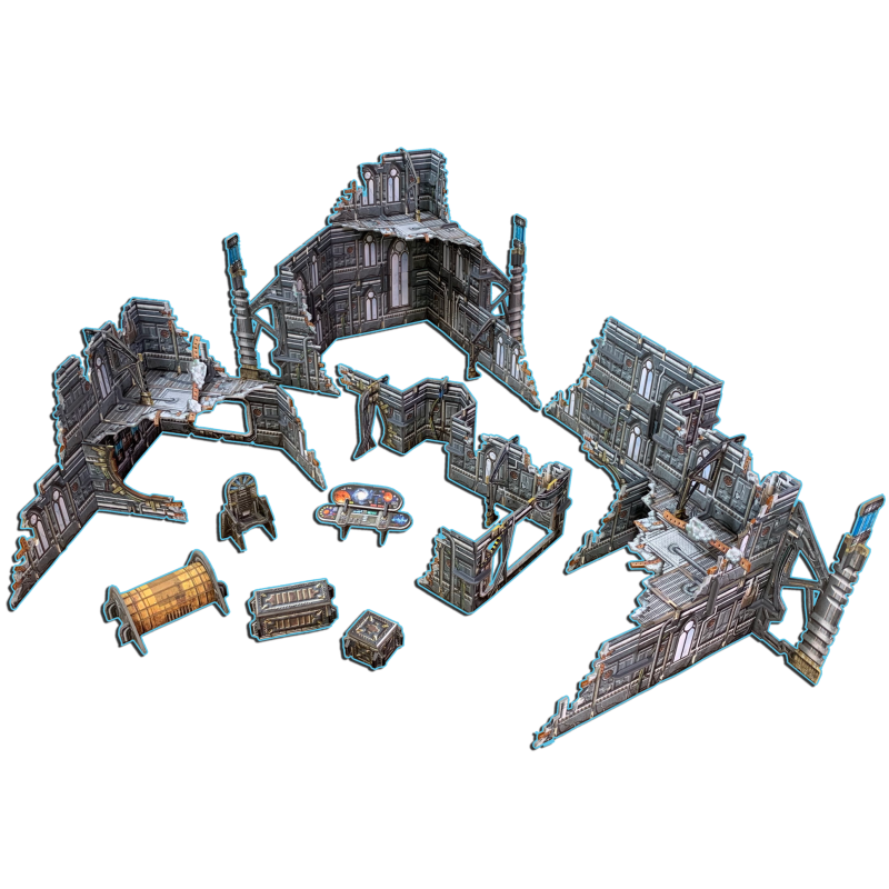 Teren jest dostarczany w płaskim opakowaniu na wysokiej jakości kartach o dużej gęstości, zadrukowanych w pełnym kolorze po obu stronach, więc nie wymaga malowania! Teren wymaga montażu, a niektóre mniejsze części będą wymagały kleju.