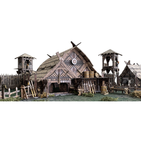Prymitywnie, ale solidnie zbudowane, kultury wojowników gromadzą się w tych długich salach na ucztach i piciu noc po nocy. Często mieszczą one lokalnego władcę, a w ich murach odbywają się spotkania rady starszych.   BattleSystems: Mead Hall zawiera wszystko, czego potrzebujesz, aby zbudować wspaniałą salę bankietową krytą strzechą dla swojej osady, odpowiednią do wielu gier fantasy i historycznych w skali 28-35 mm. Wnętrze jest w pełni szczegółowe, a dach można zdjąć. W zestawie znajdują się meble i rozrzucone elementy terenu, które można wykorzystać do ozdobienia stołu do gry. Wiele elementów jest modułowych i można je łączyć w różne kombinacje lub mieszać i dopasowywać do reszty zestawu.   Teren jest dostarczany w płaskim opakowaniu na wysokiej jakości kartonie o dużej gęstości, zadrukowanym w pełnym kolorze po obu stronach, więc nie wymaga malowania! Teren wymaga montażu, a niektóre mniejsze części będą wymagały kleju. Więcej szczegółów i pełne instrukcje można znaleźć w samouczku.