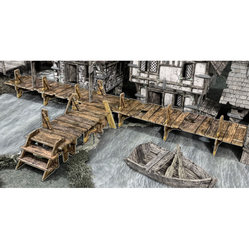 BattleSystems: Raised Walkways wzbogaca stół do gry o zestaw podniesionych drewnianych chodników. Idealnie nadają się do pomostów i pomostów w obszarach przybrzeżnych lub do poruszania się po podmokłej lub bagnistej planszy. Zestaw zawiera trzy sekcje chodnika 6 / 15 cm i zestaw drewnianych stopni. Elementy są kompatybilne z resztą serii Battle Systems Fantasy.