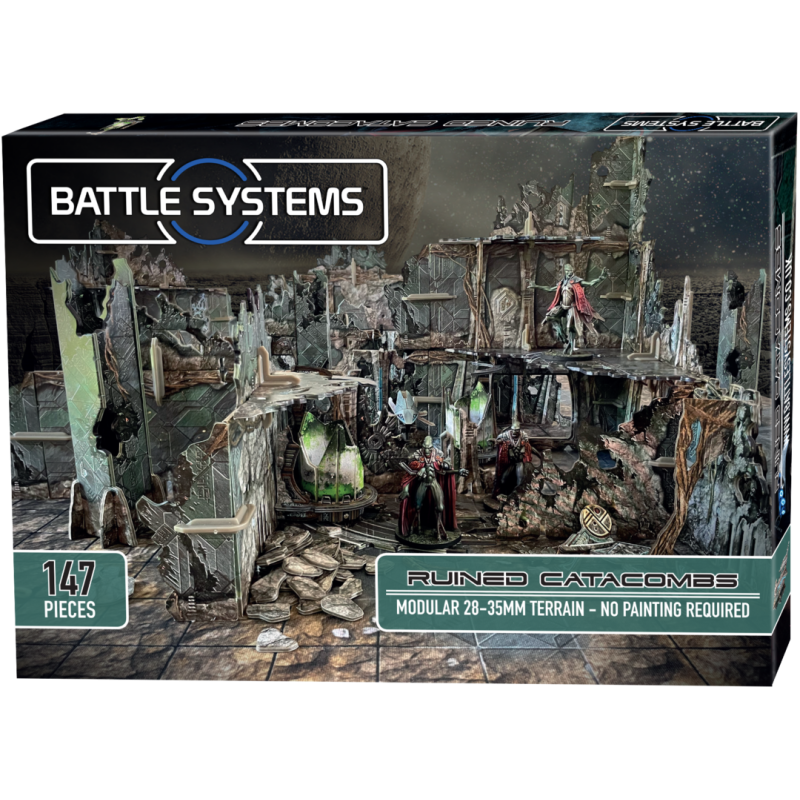 BattleSystems: Ruined Catacombs zawiera wszystko, czego potrzebujesz, aby zbudować wielopoziomową zrujnowaną świątynię, odpowiednią do wszystkich gier sci-fi 28-35 mm na tajemniczej obcej planecie. Wszystkie elementy są modułowe i mogą być montowane w dowolnej kombinacji, aby za każdym razem uzyskać inną konfigurację. Zestaw można rozszerzyć o inne zestawy z serii Battle Systems i jest on bezpośrednio kompatybilny z Alien Catacombs i innymi zestawami Core Space: First Born.