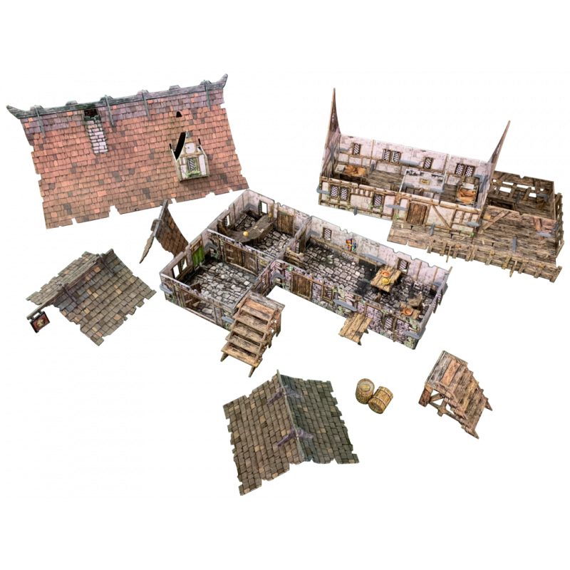 BattleSystems: Tavern zawiera wszystko, czego potrzebujesz do zbudowania rozległej wiejskiej tawerny, odpowiedniej do wielu gier fantasy i historycznych w skali 28-35 mm. Wnętrze jest w pełni szczegółowe, a dach i górne piętro można zdemontować. W zestawie znajdują się meble i rozrzucone elementy terenu, które można wykorzystać do ozdobienia stołu do gry. Wiele elementów jest modułowych i można je łączyć w różne kombinacje lub mieszać i dopasowywać do reszty zestawu.