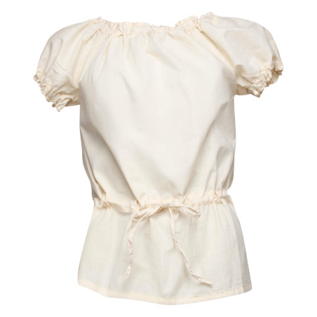 Bawełna jest wygodna w noszeniu bezpośrednio na skórze, a krój bluzki Carmen podkreśla indywidualną sylwetkę dzięki regulowanemu pasowi.