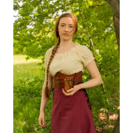 Kalina to krótka, uniwersalna bluzka, która dobrze pasuje do kostiumów karczmarki lub awanturniczej piratki.