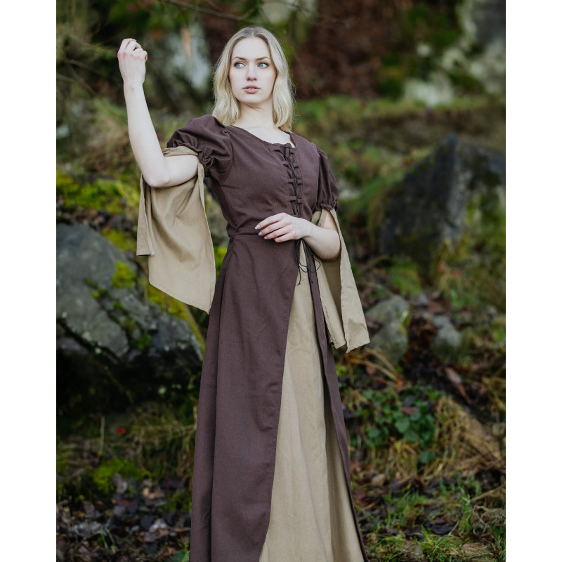 BAWEŁNIANA SUKNIA LORELEY - BRĄZOWA XL LARP