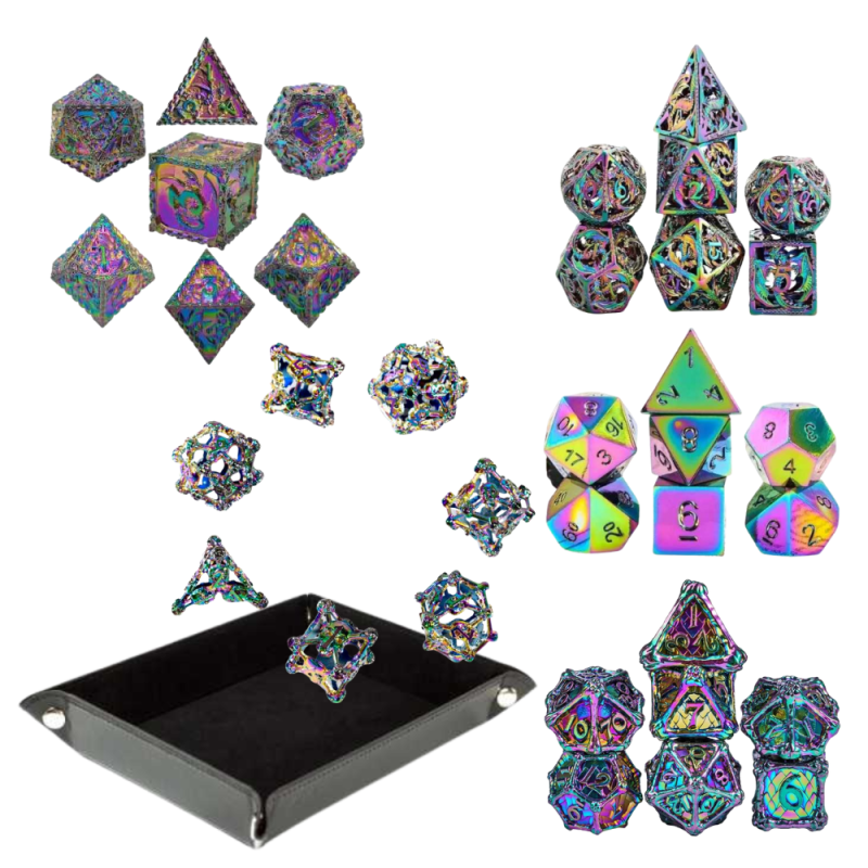 Wybierz komplet kości z tacką do rzucania, aksamitnym woreczkiem pod kolor, monetami, albo zmywalną matą. Obdaruj kogoś zestawem nietypowych kostek, które świecą w ciemności lub całym niezbędnikiem gadżetów RPG – w sam raz dla początkującego i zaawansowanego gracza!