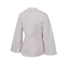 Dzięki temu, mimo lekkiego kroju i szerokich rękawów w kształcie trąbki, ma surowy, niemal mundurowy charakter.