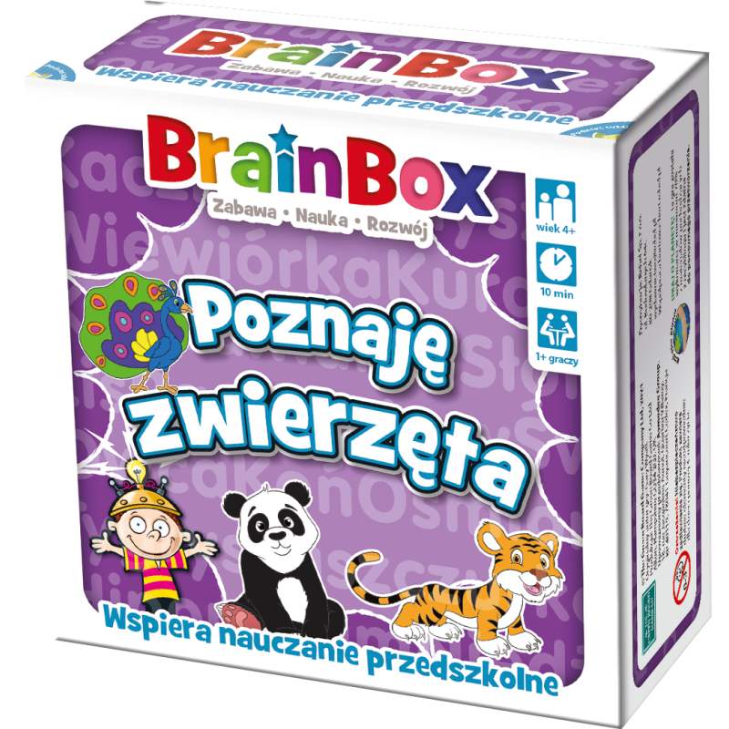 Szukasz gry, która pozwoli Ci spędzić z dzieckiem wartościowy czas, a jednocześnie będzie wspierać jego rozwój już w okresie przedszkolnym? BrainBox - Poznaję zwierzęta to coś dla Ciebie! Ta rodzinna gra zabierze młodsze i starsze umysły w ekscytującą podróż pełną ciekawych odkryć rozwijających spostrzegawczość i pamięć. Na 24 kartach znajdziesz urocze zwierzęta domowe, te żyjące dziko na odległych lądach, a także pod wodą.