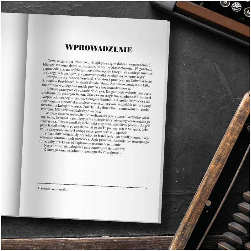 Trwa sroga zima 1926 roku. Otrzymałeś ponure wieści o śmierci twojego ciotecznego dziadka, George’a Gammella Angella, historyka i antropologa na stanowisku profesor emeritus języków semickich na Uniwersytecie Browna. Niecodzienne okoliczności jego śmierci, wskazują, że zaangażował się w wyjątkowo niebezpieczne badania. Jako spadkobierca i wykonawca ostatniej woli profesora ruszasz do Providence. Czy znajdziesz w sercu dość odwagi, by zmierzyć się z okropieństwami z otchłani czasu?