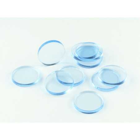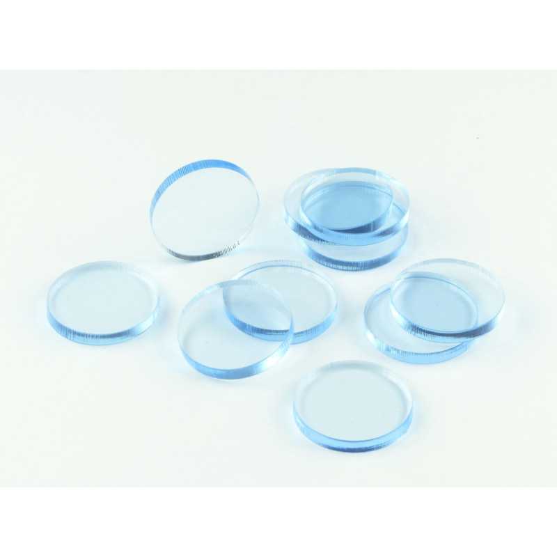 Zestaw 10 żetonów o średnicy 22 mm, wykonanych ze szkła akrylowego o grubości 3 mm.