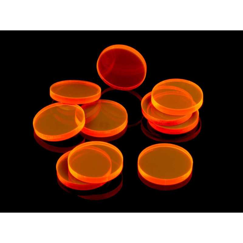 Zestaw 10 żetonów o średnicy 22 mm, wykonanych ze szkła akrylowego o grubości 3 mm.