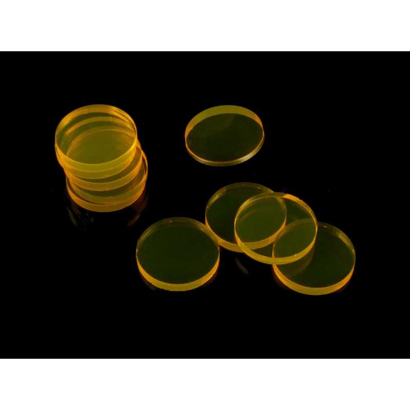 Zestaw 10 żetonów o średnicy 22 mm, wykonanych ze szkła akrylowego o grubości 3 mm.
