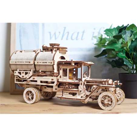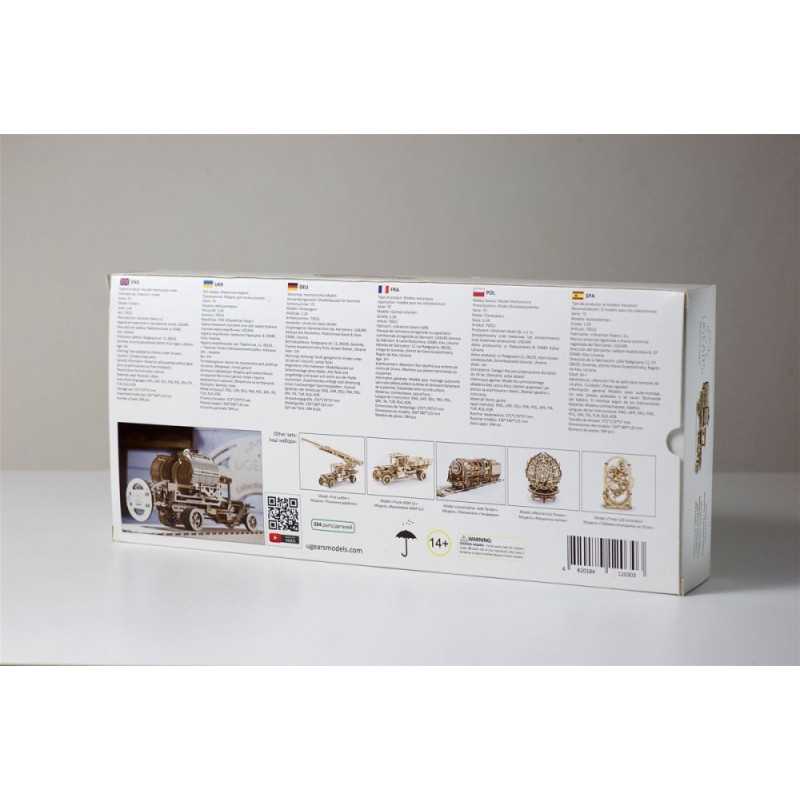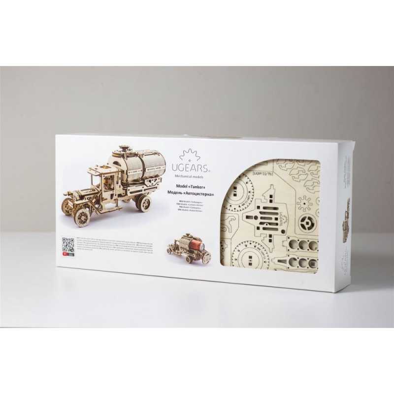 Podobnie jak wszystkie modele UGEARS, Cysterna zaopatrzona jest w kolorową instrukcję składania, która krok po kroku objaśnia kolejność prac konstrukcyjnych. Poszczególne części modelu są już precyzyjnie wycięte ze sklejki i gotowe do składania.