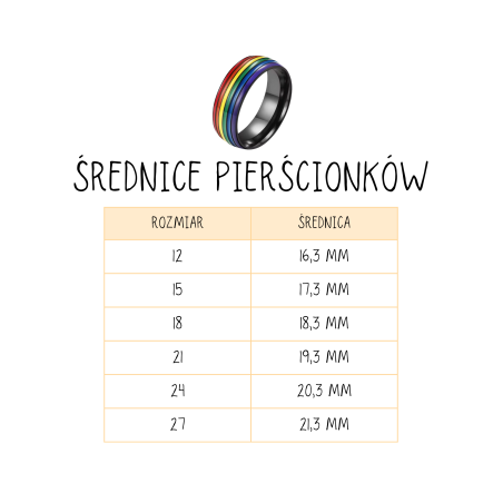 CZARNY PIERŚCIONEK PIERŚCIEŃ OBRĄCZKA TĘCZOWA TĘCZA LGBT ROZMIAR 21