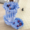Nie można nie wspomnieć o niezwykłym wyglądzie tej wieży. Jej unikalny design inspirowany jest kryształami, które w kulturze fantasy często symbolizują mądrość, moc oraz sekrety starożytnych cywilizacji. Kryształy te nie tylko dodają wieży mistycznego charakteru, ale także sprawiają, że staje się ona prawdziwym dziełem sztuki na Twoim stole. Wieża dostępna jest w dwóch wersjach kolorystycznych: czarnej, przypominającej mroczne kryształy, oraz niebieskiej, kojarzącej się z lodowymi artefaktami lub magią wody. To daje możliwość dopasowania wieży do klimatu gry, jak również do indywidualnych preferencji estetycznych.