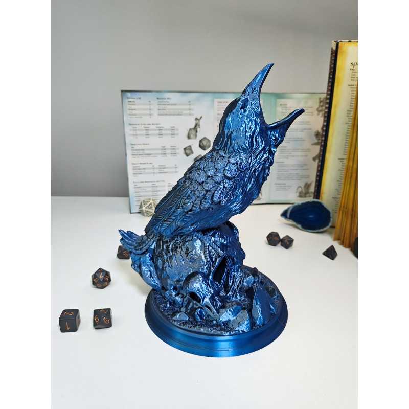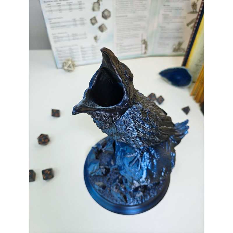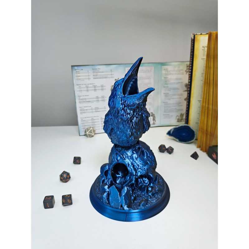 Ta misternie rzeźbiona wieża do kości przedstawia kruka wznoszącego swój donośny krzyk. Idealna dla gier RPG, ta wieża dodaje mrocznego klimatu każdej sesji, obiecując, że każde rzucenie kością będzie pełne dramatyzmu i niepewności.