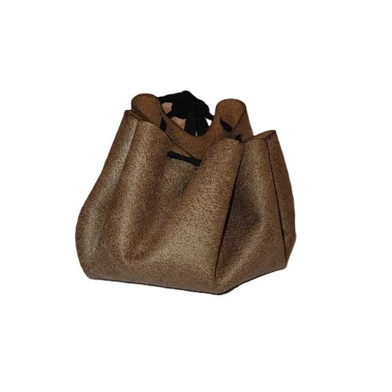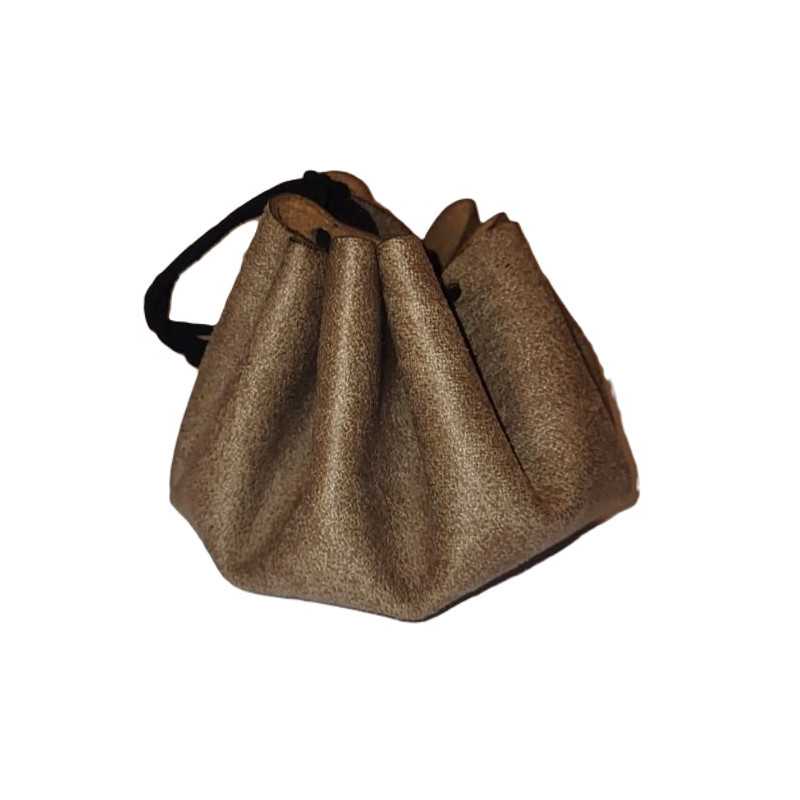 Sakiewka na kości wykonana ze skóry mielonej z dodatkiem poliestru. Materiał wyglądem, zapachem i wytrzymałością bardzo przypomina skórę naturalną a do tego jest znacznie bardziej odporny na wilgoć.