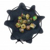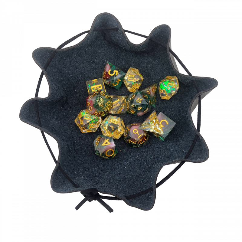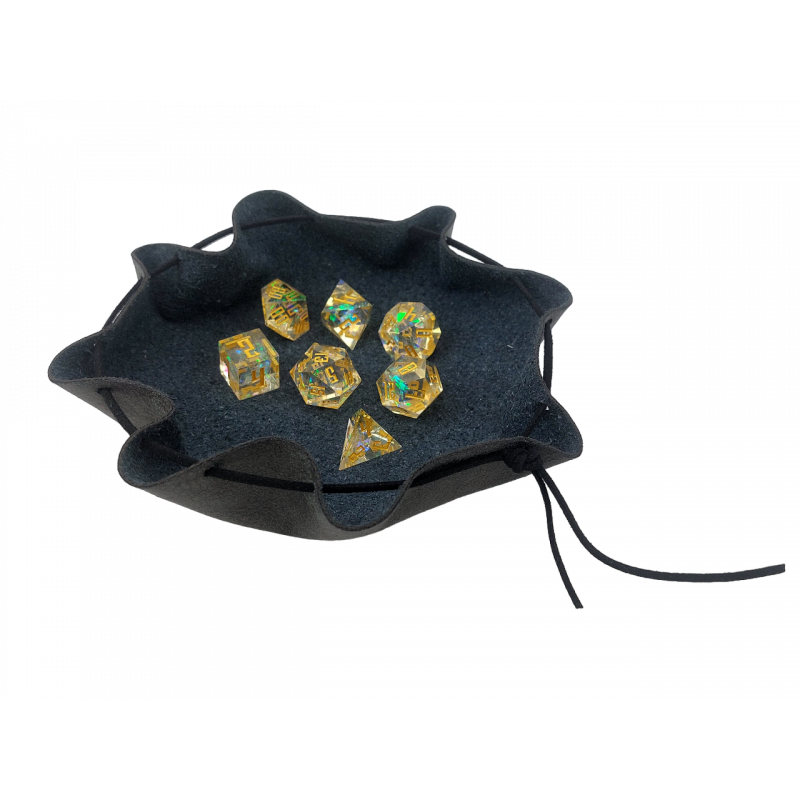 Skórzana tacka na kości to przydatny, choć niepozorny gadżet. Po pierwsze pozwala na swobodę grania w pobliżu innych osób, ponieważ tłumi dźwięk toczących się kości. Po drugie likwiduje problem braku miejsca do rzucania, np. podczas podróży, w pociągu, samolocie. Niewielka przestrzeń przeznaczona wyłącznie na rzuty kostką zdecydowanie zwiększa komfort oraz przyjemność z gry.