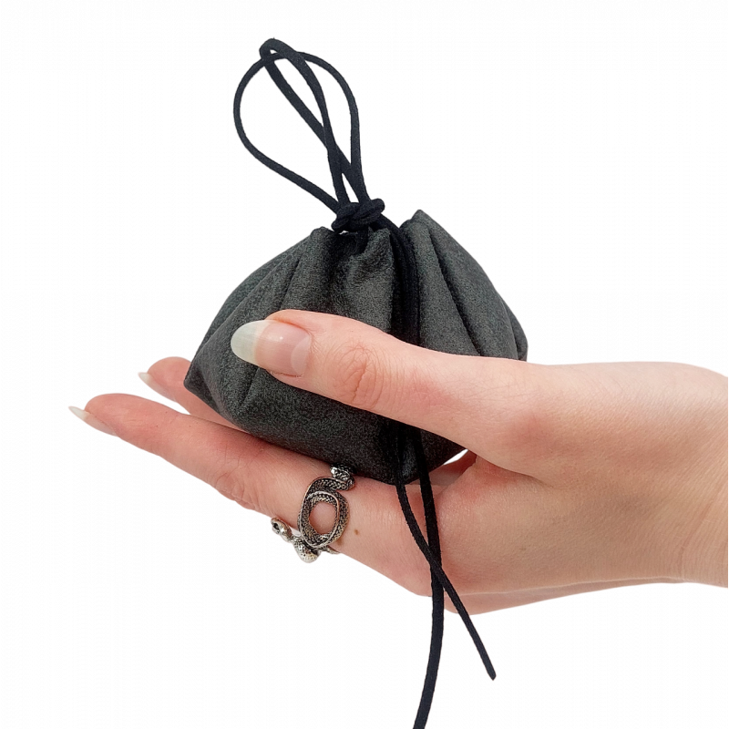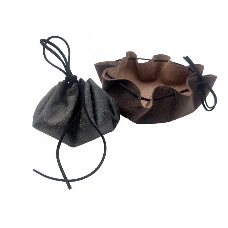 Sakiewka po rozsznurowaniu ma kształt koła o średnicy 20cm. Dzięki temu poza funkcją przechowywania kości, może także służyć jako tacka do ich rzucania.
