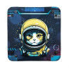 Dwustronna tacka na kości do gry MLEM. Jedna strona tacki przedstawia kotka kosmonautę, a druga kolorowy kosmos pełen planet i gwiazd. Taka oprawa wizualna pozwala na lepsze odczucia podczas gry oraz pomaga utrzymać kości w jednym miejscu i wygłuszyć dźwięk ich toczenia się. Produkt nieoficjalny, kompatybilny z grą MLEM.