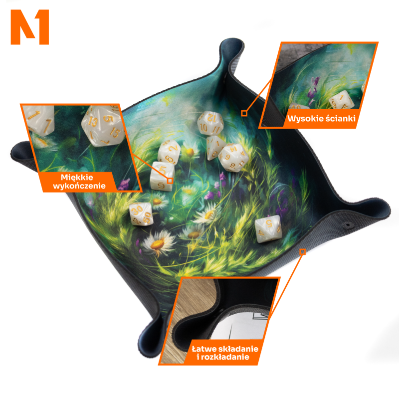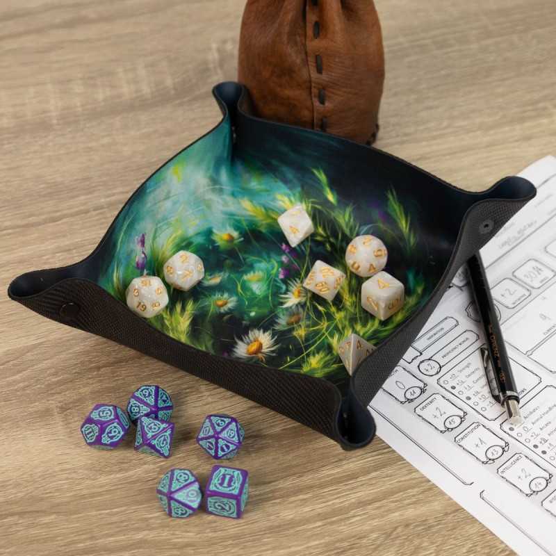 Wprowadź odrobinę natury do swoich sesji RPG i gier planszowych z Dice Tray "Kwietny Wianek". Idealny do gier fantasy, inspirowanych przyrodą, takich jak D&D, Pathfinder i wiele innych. Wysoka jakość wykonania i piękny, kwiecisty design zapewnią, że Twoje kostki będą zawsze pod kontrolą.