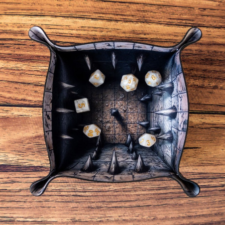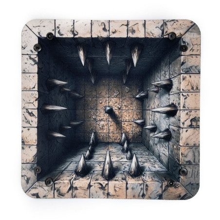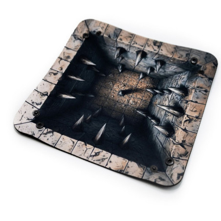 Kiedy drużyna schodzi na niższy poziom lochu, nigdy nie wiadomo, co czai się za kolejnym rogiem. Ta tacka do rzutów przypomina, że każdy rzut może skończyć się w... pułapce. Dosłownie. Model „To pułapka” wygląda jak komnata wypełniona ostrzami, kolcami i potencjalnym końcem Twojego bohatera.