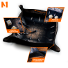 Tacka wykonana jest z elastycznej gumy o grubości 2 mm i ma jednostronny, trwały nadruk. Dzięki metalowym napom złożysz ją w kilka sekund i przygotujesz pole do rzutów, które nie będą turlać się po całym stole ani wpadać pod książki. Tłumi dźwięk rzutów, co szczególnie docenią gracze wieczornych sesji.