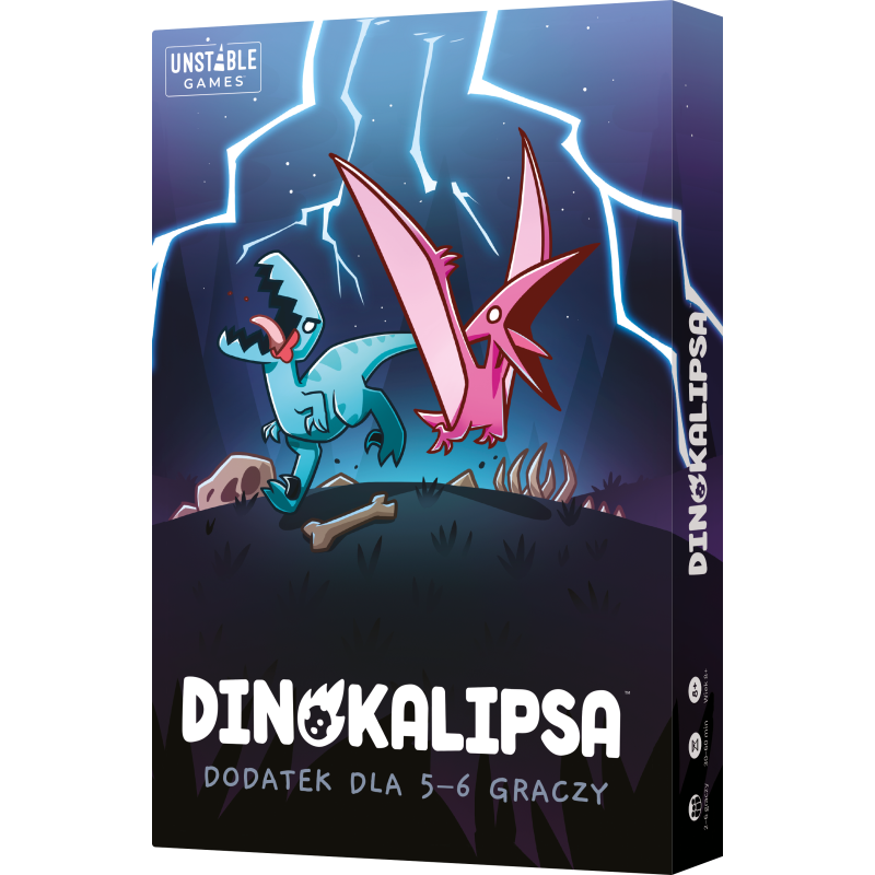 Dinokalipsa: Dodatek dla 5-6 graczy to rozszerzenie wprowadzające aż 50 zupełnie nowych kart katastrof. Co więcej, dzięki dwóm nowym dinozaurowym postaciom możecie doświadczyć tych nieszczęść nawet w 6 osób! Uważajcie tylko, aby nie dać się porwać pterodaktylowi