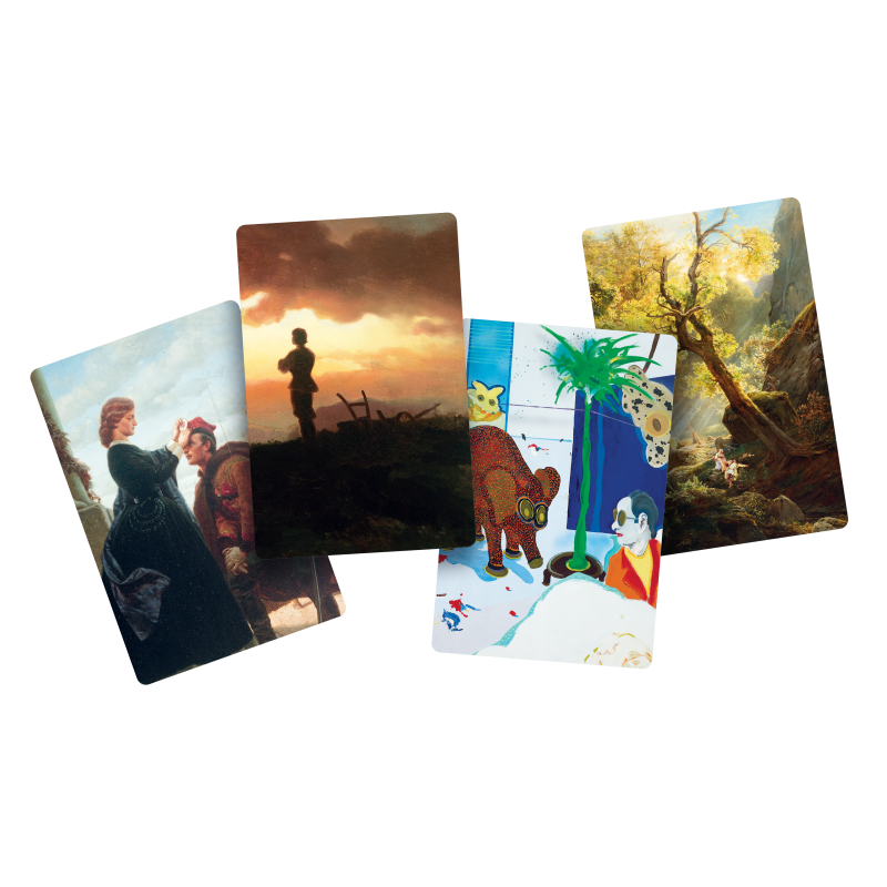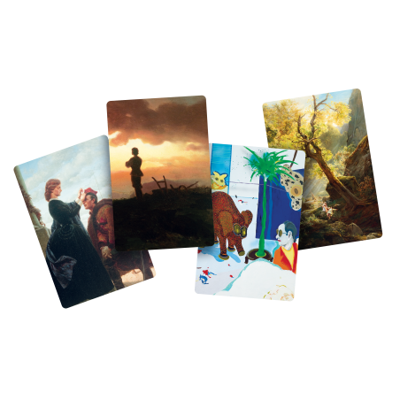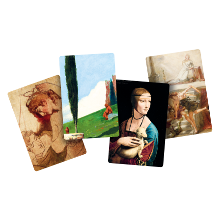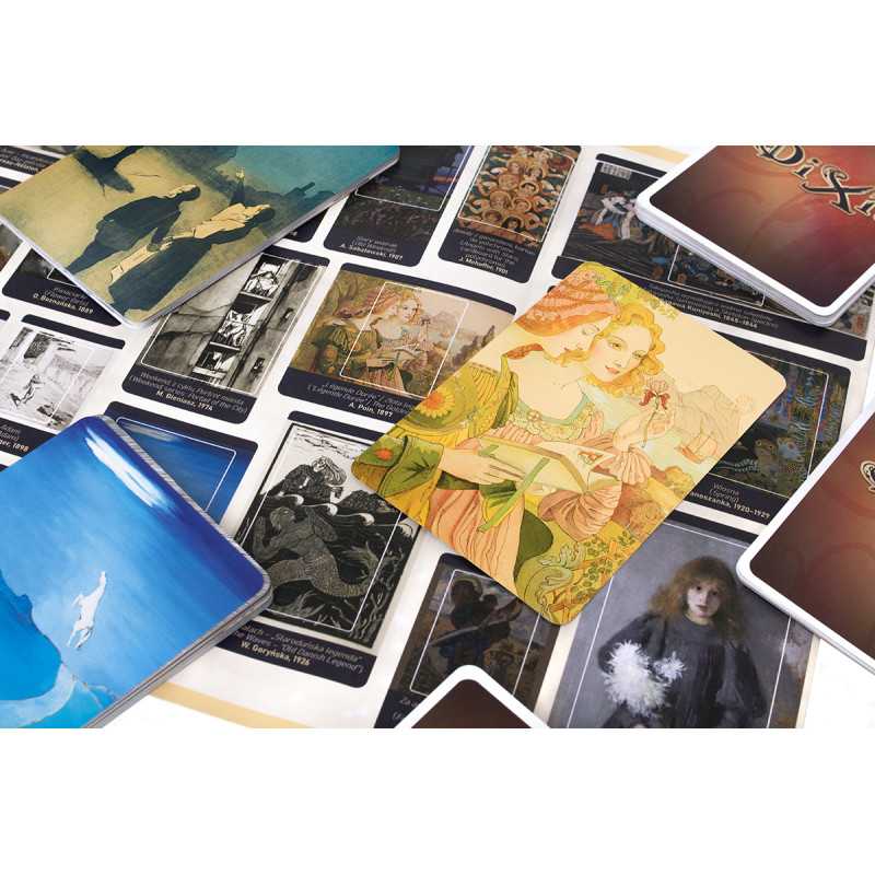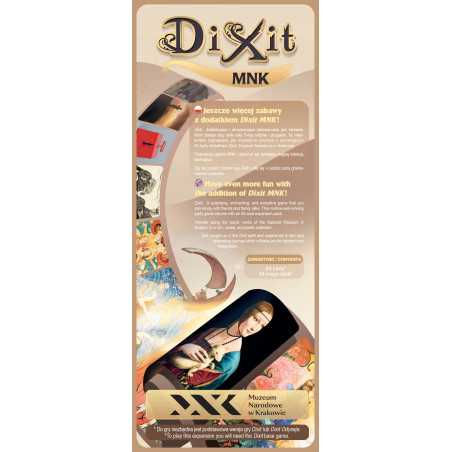 Dixit: MNK to 84 zupełnie nowe karty, które możesz wykorzystać jako alternatywną talię lub pomieszać je z zestawem z dowolnej gry podstawowej. Znajdziesz na nich fragmenty dzieł sztuki zgromadzonych w zbiorach Muzeum Narodowego w Krakowie, między innymi „Damę z gronostajem” Leonarda da Vinci, „Dziewczynkę z chryzantemami” Olgi Boznańskiej, „Młodą Polskę” Jacka Malczewskiego” czy „Wernyhorę” Jana Matejki. Ten wyjątkowy dodatek pozwoli Ci nie tylko odkryć świat nieszablonowych skojarzeń, ale też przemierzyć galerie MNK i zachwycić się sztuką różnych epok.
