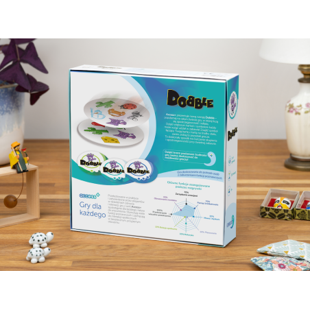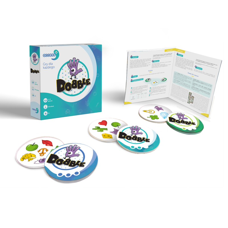 Dobble Access+ to zupełnie nowa wersja popularnej na całym świecie gry, w której liczą się spostrzegawczość i refleks. Dzięki większym kartom i symbolom każdy może wziąć udział w wyzwaniu! Znajdź symbol łączący Twoją kartę z kartą na środku stołu, zanim zrobią to pozostali gracze.