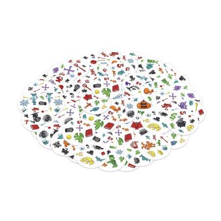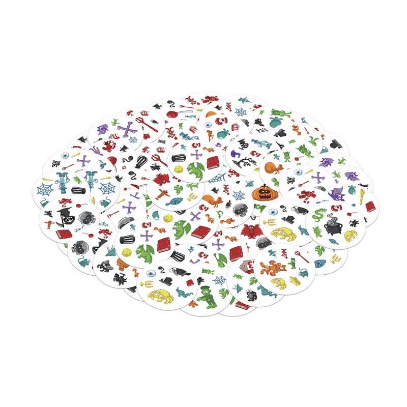 Spójrz na pierwszą kartę, którą trzymasz w ręku oraz na tę, która leży na środku stołu. Znajdź na nich wspólny symbol, nazwij go i szybko pozbądź się swojej karty. Teraz następna! Tylko nie zwątp, dwie karty zawsze łączą się dokładnie jednym symbolem!