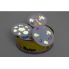 Świętuj 10. urodziny najpopularniejszej gry rodzinnej ze specjalną edycją pełną niespodzianek! Dobble Collector to aż 2 nowe talie powiększonych kart: jedna z nich nawiązuje do imprezowo-urodzinowych klimatów i ma złocone karty, a druga, upiorna… świeci w ciemności! Całość zamknięta jest w odpowiednio powiększonej metalowej puszce, która skutecznie zabezpieczy zawartość.