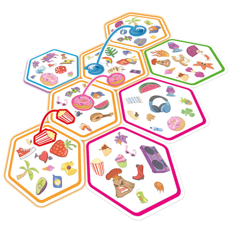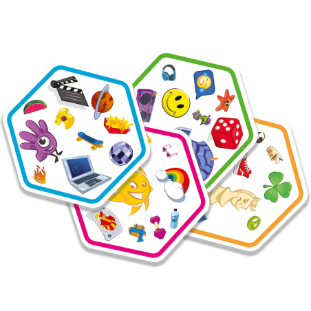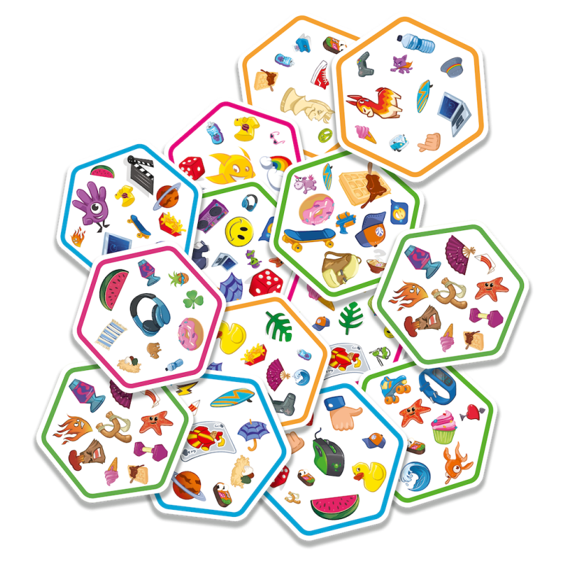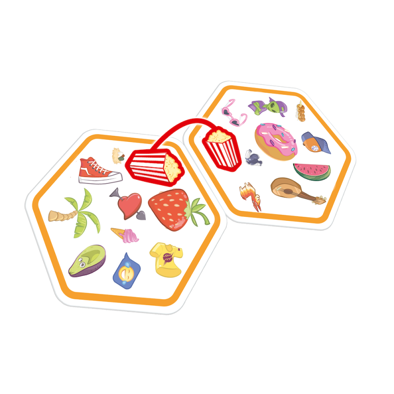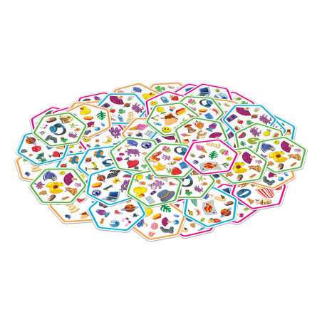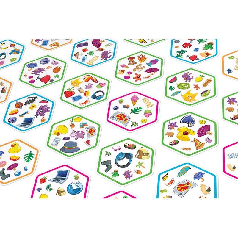 Połącz siły z innymi mistrzami spostrzegawczości i odkryj zupełnie nowy wymiar rozgrywki! Spójrz na wylosowaną kartę oraz na te, które już zostały wyłożone na stole. Znajdź na nich wspólny symbol, nazwij go i dołóż kartonik do wzoru. Teraz następny! Tylko nie zwątp, każda karta łączy się z inną zawsze tylko jednym symbolem!