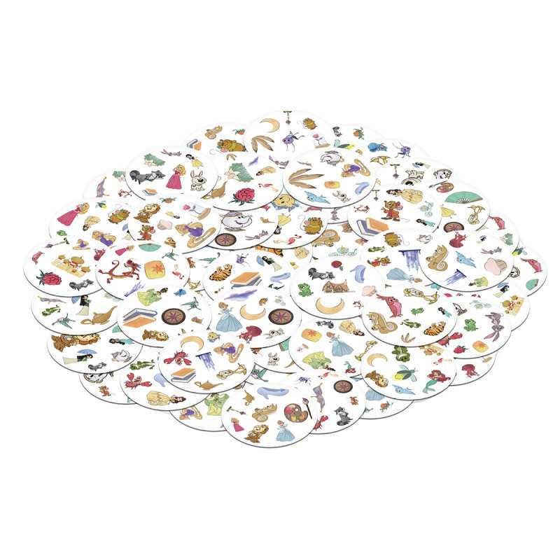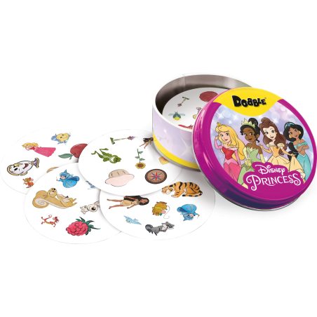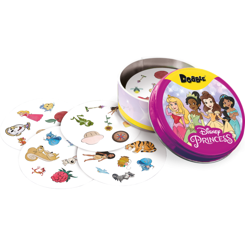 W Dobble można grać na wiele sposobów, a 5 z nich jest opisanych w instrukcji jako mini-gry. Aby utrudnić zabawę symbole na kartach bywają odwrócone i miewają różne rozmiary. Same karty są okrągłe i kolorowe, a każda z nich ma unikalny zestaw symboli związanych ze światem księżniczek Disneya.