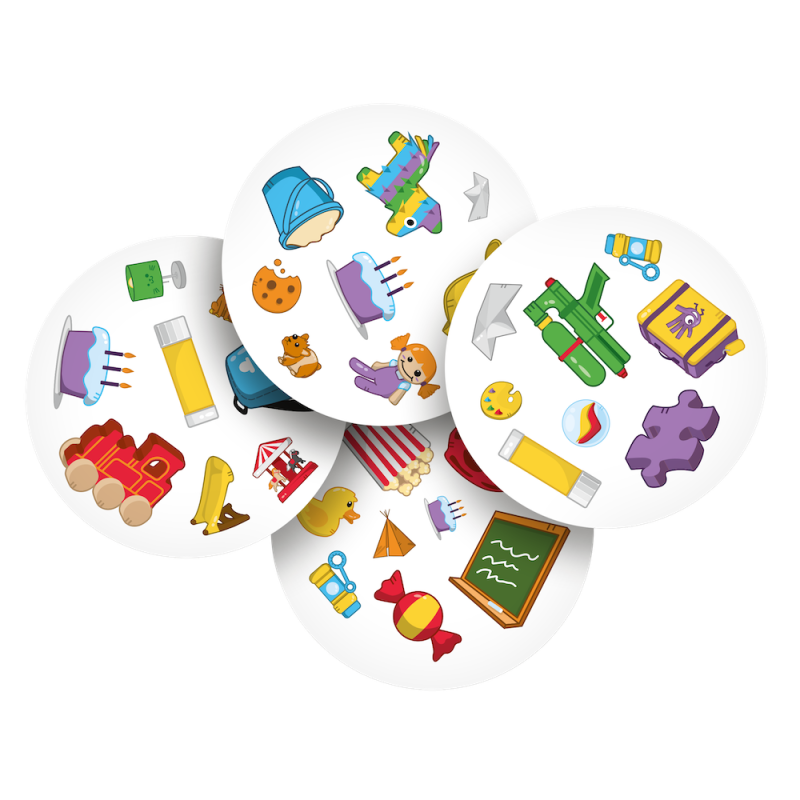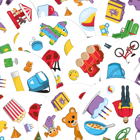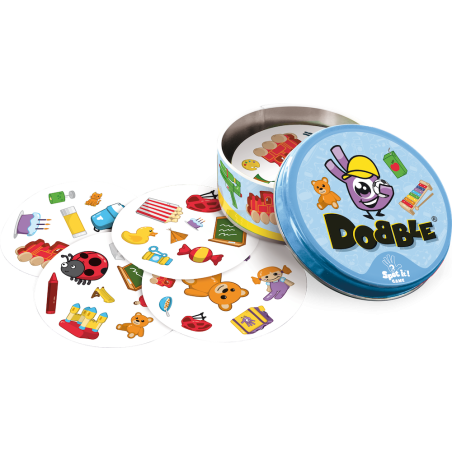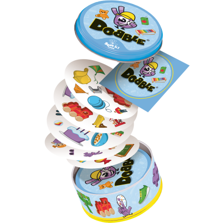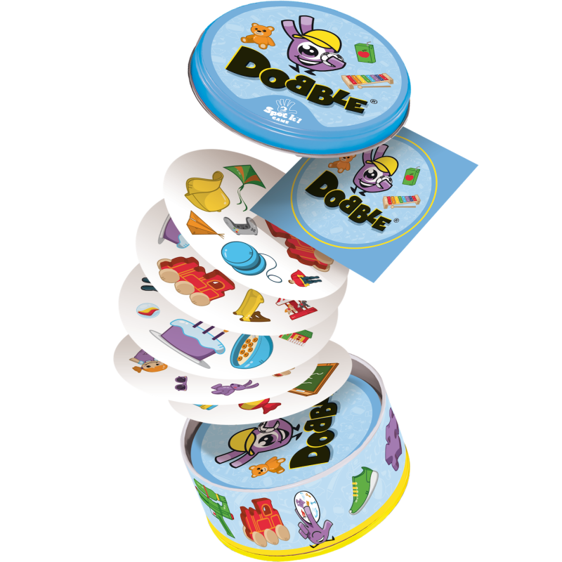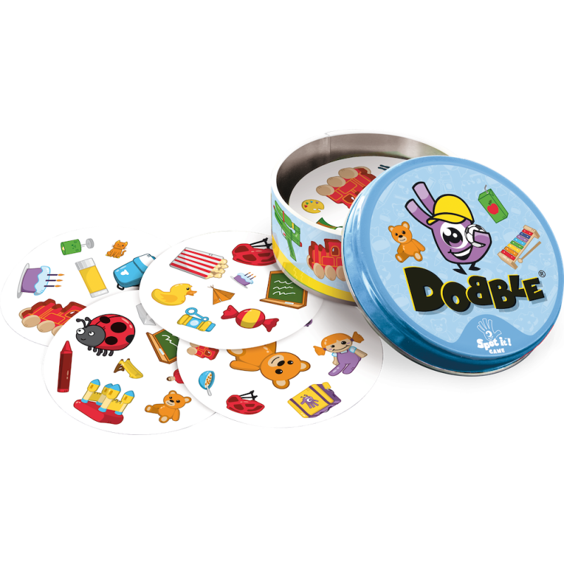 Dobble Kids to gra wspierająca trening spostrzegawczości i szybkości reakcji, w pełni dostosowana do potrzeb najmłodszych. Zestaw zawiera 55 kart z symbolami przedstawiającymi przedmioty i zabawki, którymi dzieci bawią się każdego dnia. Miś, plecak, piłka, rower, lalka – proste obrazki łatwiej nazwać, dzięki czemu możemy zaprosić do zabawy dzieci od 4. roku życia.