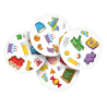 Spójrz na pierwszą kartę, którą trzymasz w ręku oraz na tę, która leży na środku stołu. Znajdź na nich wspólny symbol, nazwij go i szybko pozbądź się swojego kartonika. Teraz następny! Tylko nie zwątp, każda karta łączy się z inną zawsze tylko jednym symbolem! Dobble Kids to gra wspierająca trening spostrzegawczości i szybkości reakcji, w pełni dostosowana do potrzeb najmłodszych. Zestaw zawiera 55 kart z symbolami przedstawiającymi przedmioty i zabawki, którymi dzieci bawią się każdego dnia. Miś, plecak, piłka, rower, lalka proste obrazki łatwiej nazwać, dzięki czemu możemy zaprosić do zabawy dzieci od 4. roku życia. Dlaczego pokochasz tę grę? Przyjrzyj się obrazkom, znajdź parę, przejdź do kolejnej karty. Wydaje się proste, prawda? Ale pary nie są tak oczywiste: obrazki na kartach są różnej wielkości, odwrócone, a przede wszystkim otoczone zupełnie innymi grafikami, co potrafi zmylić nawet najbardziej spostrzegawczych graczy! Żadna inna gra nie rozrusza towarzystwa tak jak Dobble. Żadna nie jest tak prosta i nie daje tyle zabawy w ciągu tych kilku minut! Rozgrywka jest bardzo szybka, emocjonująca, a przy stole dużo się dzieje, gdy każdy próbuje wyprzedzić innych uczestników w wyścigu do zwycięstwa. Poza tym: Tylko Dobble tłumaczy się w minutę! Gra ukryta jest w solidnej, metalowej puszce, która z powodzeniem wytrzyma transport gdzie tylko zapragniemy. Okrągłe, solidne karty są bardzo wygodne podczas zabawy, nawet dla niewielkich, dziecięcych rączek, a grafiki zwierząt są czytelne nawet dla najmłodszych. Opakowania nowych wersji Dobble zostały zaprojektowane tak, by być bardziej eko! Zawierają o 95% mniej plastiku, a papier i tektura wykorzystane do ich produkcji mają certyfikat FSC. Zawartość: 55 okrągłych kart puszka instrukcja